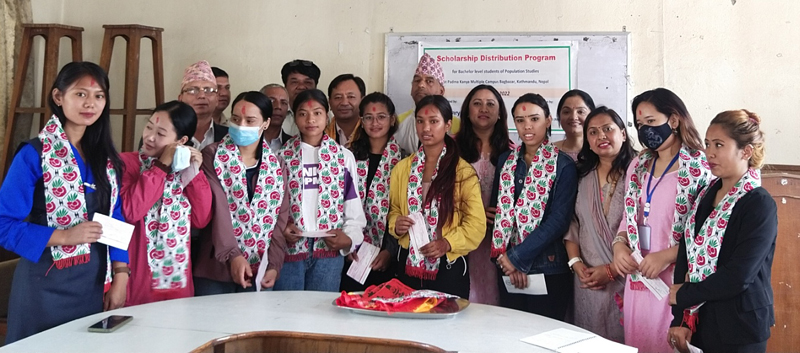 जनसंख्या विषयका विभागिय प्रमुख एवं एमए कार्यक्रम संयोजक भेषनाथ सापकोटाको अध्यक्षतामा सम्पन्न छात्रबृत्ति वितरण एवं सम्मान कार्यक्रममा उपप्राध्यापक राधिका श्रेष्ठले स्वागत गर्नुभएको थियो भने छात्रवृत्ति वितरण कार्यक्रमका व्यवस्थापक उपप्राध्यापक अम्विका कौडालले संचालन गर्नुभएको थियो ।